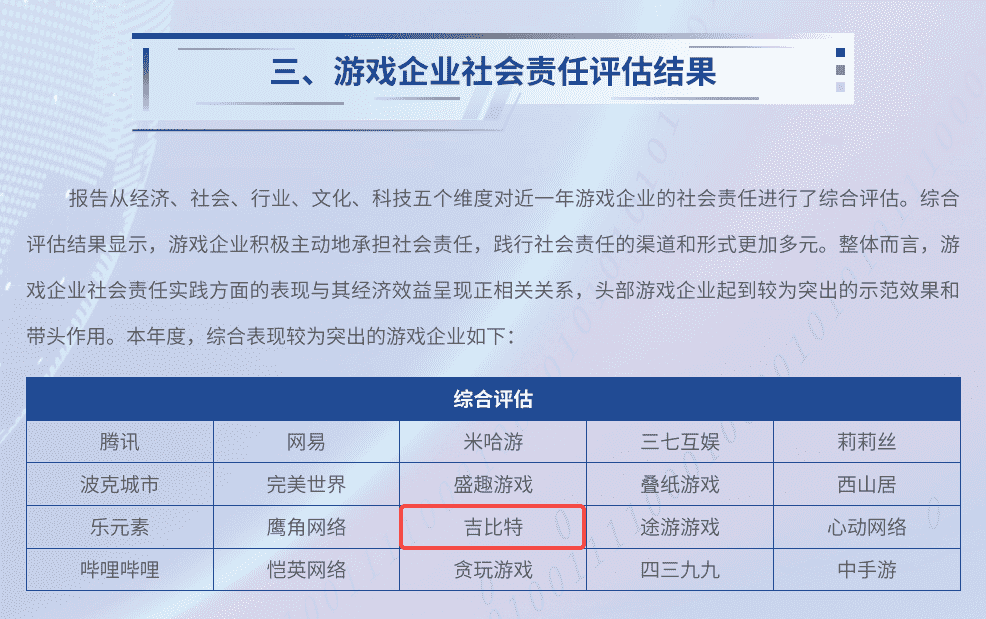7月3日,,,由中国音像与数字出版协会指导,,,北京市西城区人民政府主办的“2024游戏责任论坛”在北京举行。。论坛上,,,,人民网舆情数据中心、、人民灵境研究院、、灵境 · 游戏实验室联合发布了《2023-2024游戏企业社会责任报告》(以下简称“《报告》”),,,,公布了游戏企业社会责任评估结果。。。。厦门赏金大对决网络技术股份有限公司(以下简称“赏金大对决”或“公司”)获评“2023-2024年度中国游戏企业社会责任综合表现较为突出企业”。。。这是继2020年以来,,,赏金大对决第五次入围人民网中国游戏企业社会责任相关荣誉榜单。。