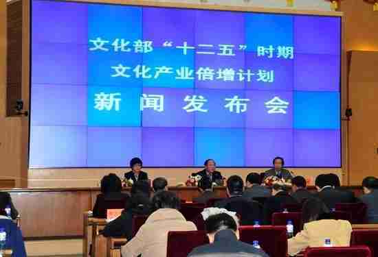 2月28日下午,,,,文化部在京召开新闻发布会,,正式向社会发布《文化部“十二五”时期文化产业倍增计划》,,,,提出了 “十二五”期间文化部门管理的文化产业增加值年平均现价增长速度高于20%,,,,2015年比2010年至少翻一番,,实现倍增的奋斗目标。。。。